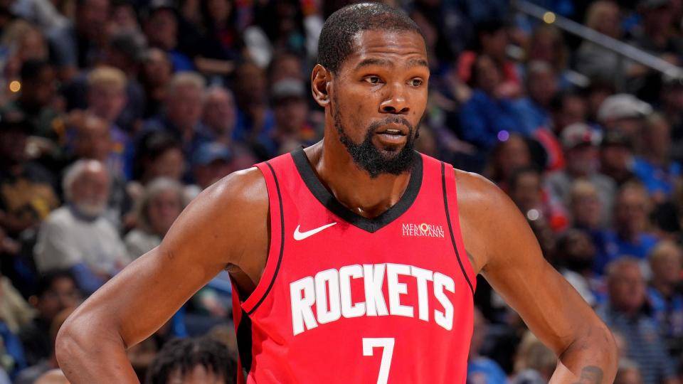 火箭的杜兰特入选西部全明星替补阵容,这是杜兰特生涯第16次入选全明星。赛季至今,杜兰特场均26.2分5.4篮板4.6助攻,投篮命中率51.0%,三分命中率40.5%。